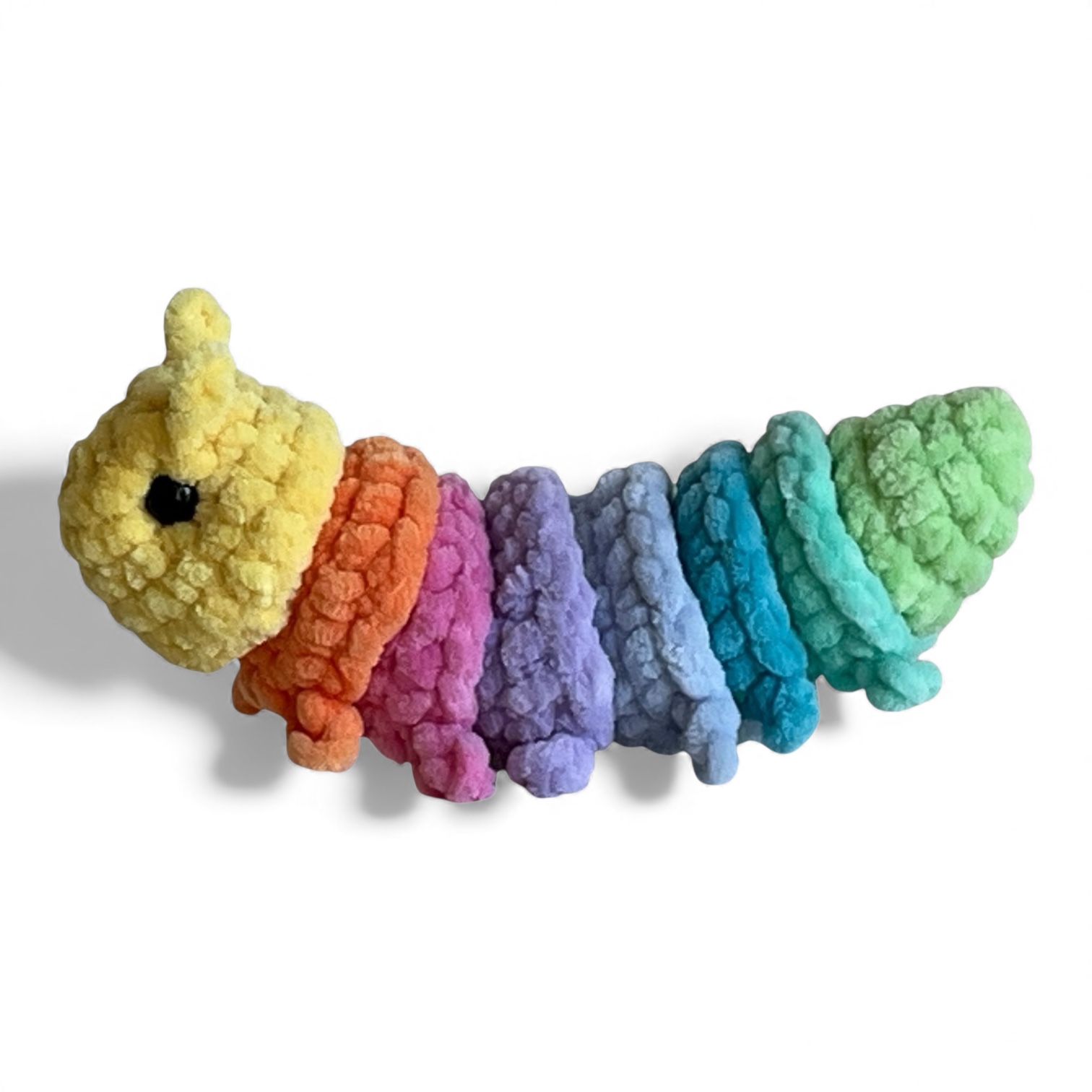 Petite chenille aux couleurs arc-en-ciel toute mignonne et douce faite à la main avec amour pour les tout-petits et les plus grands. Cette petite chenille peut servir de petit jouet sensoriel (anti-stress) car elle peut être manipulée, courbée et torsionnée par les petites mains.