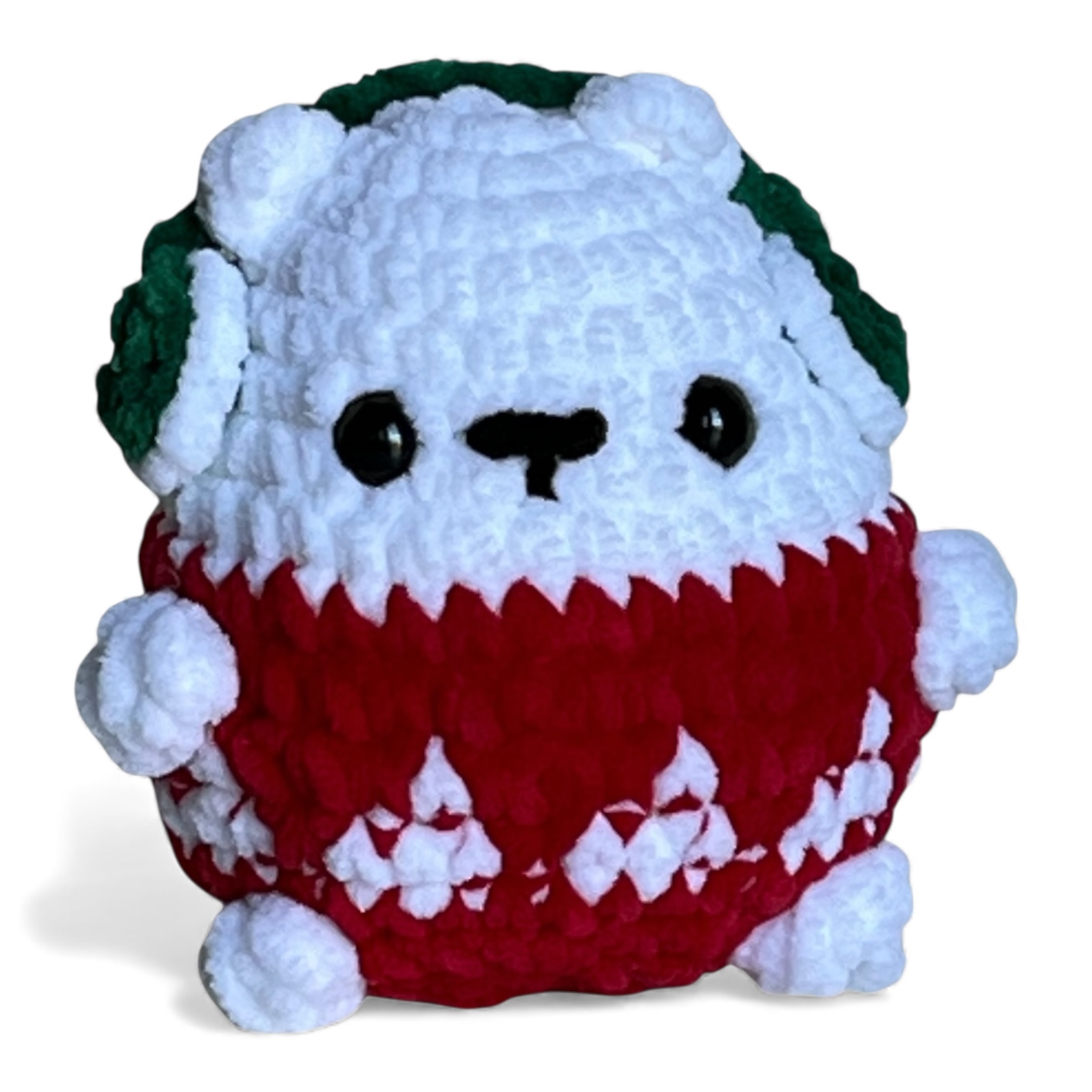 Petit ourson de Noël tout mignon et doux fait à la main avec amour pour les tout-petits et les plus grands. Sûr, doux pour la peau délicate, parfait pour offrir en cadeau comme peluche à câliner ou comme décoration de Noël à suspendre dans votre sapin ou pour égayer votre demeure.