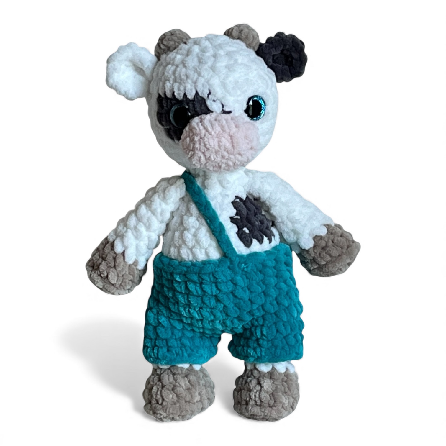Vache toute mignonne et douce faite à la main avec amour pour les tout-petits et les plus grands. Sûre, douce pour la peau délicate, parfaite pour un anniversaire, une décoration de chambre d’enfant ou, tout simplement, comme peluche à câliner.