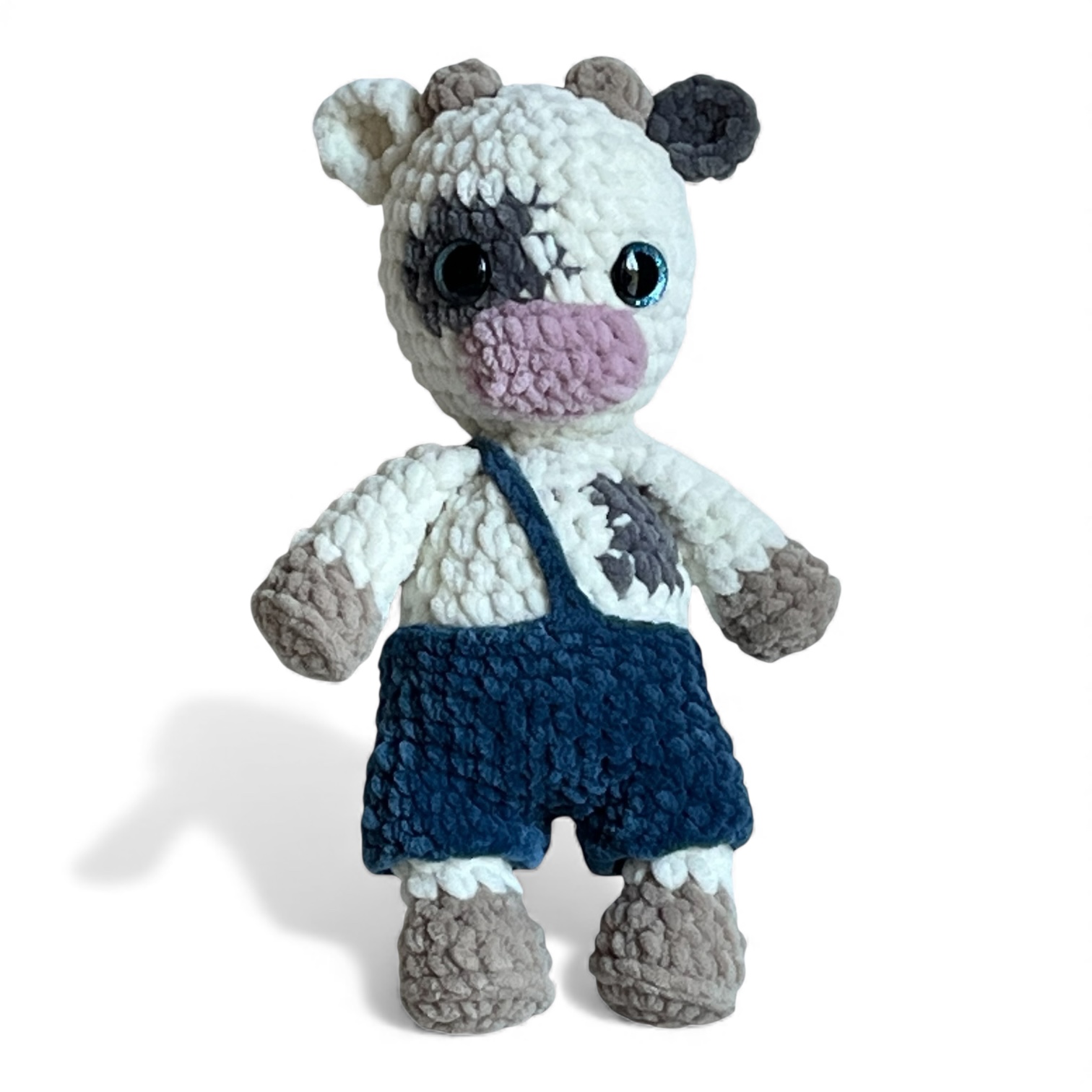 Vache toute mignonne et douce faite à la main avec amour pour les tout-petits et les plus grands. Sûre, douce pour la peau délicate, parfaite pour un anniversaire, une décoration de chambre d’enfant ou, tout simplement, comme peluche à câliner.