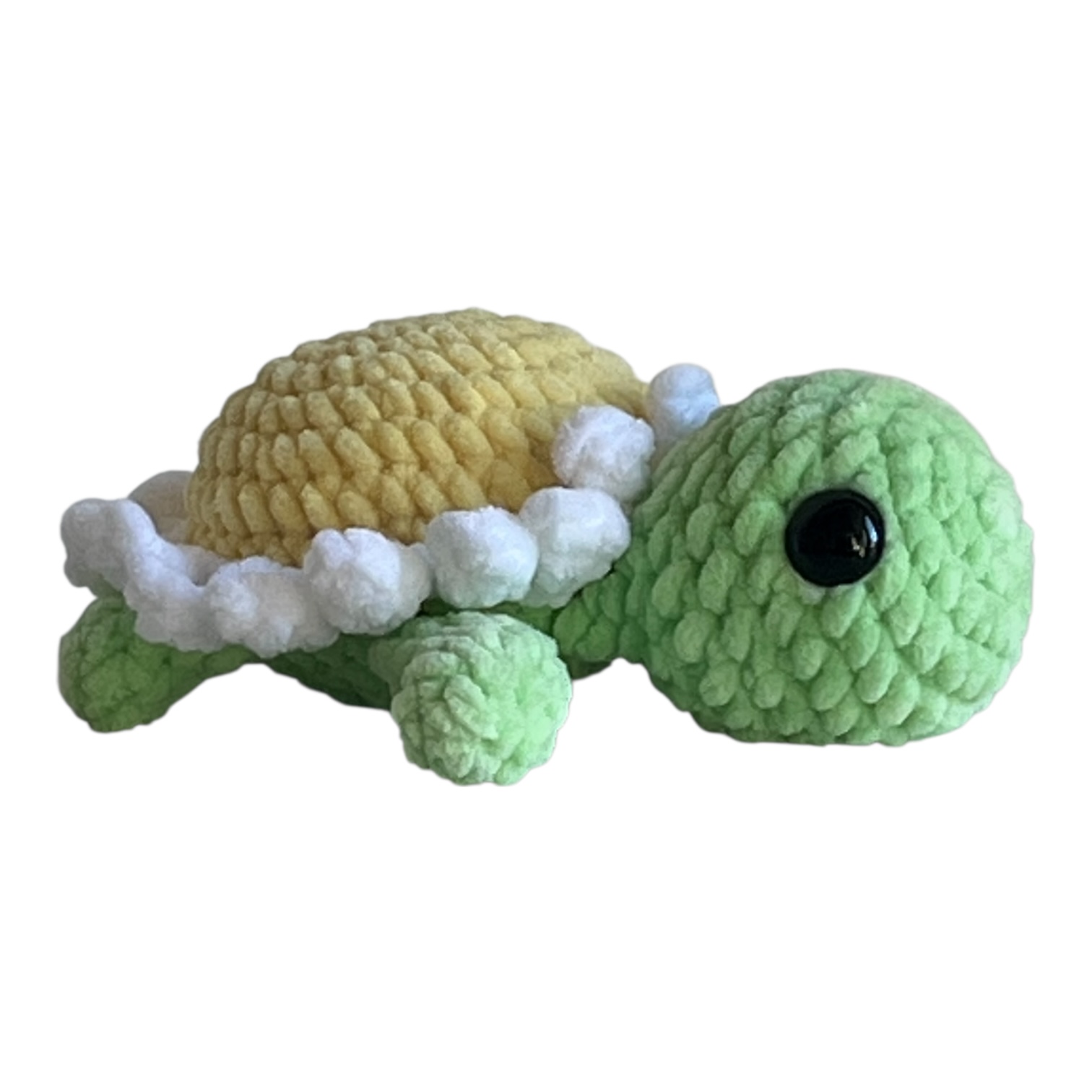 Petite tortue avec une carapace marguerite toute mignonne et douce faite à la main avec amour pour les tout-petits et les plus grands ou comme décoration de chambre d’enfants.